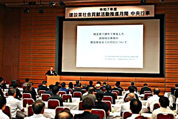 全国建設業協会は、7月24日に経団連会館で令和7年度の建設業社会貢献活動推進月間中央行事を開催した。当協会越谷支部が令和7年度建設業社会貢献活動推進月間・功労者表彰を受け、事例発表した。